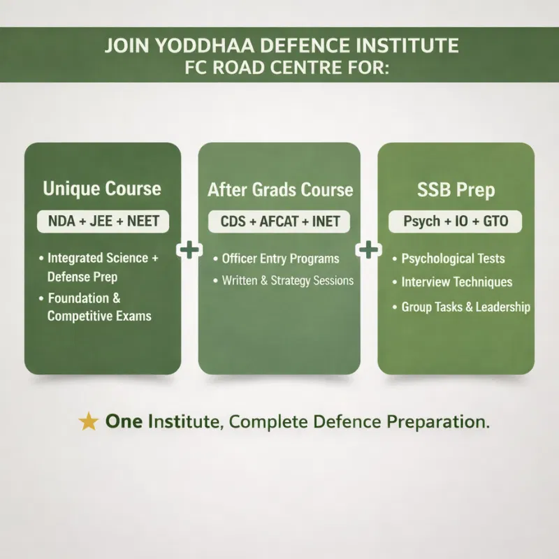 At Yoddhaa Defence Institute FC Road Centre, students don’t just prepare for exams — they prepare for a career in uniform, leadership, and lifelong excellence. Here, preparation goes beyond textbooks. It builds discipline, confidence, personality, and the mindset of a future officer.